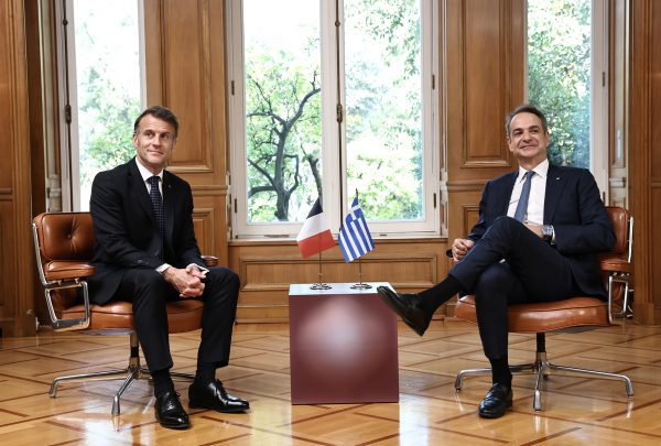 Στο Μέγαρο Μαξίμου βρίσκεται ο Γάλλος πρόεδρος Εμανουέλ Μακρόν, όπου τον υποδέχθηκε ο πρωθυπουργός Κυριάκος Μητσοτάκης για να ξεκινήσει η μεταξύ τους συνάντηση στο πλαίσιο της οποίας αναμένεται να υπογραφεί η ανανέωση της συμφωνίας αμυντικής συνεργασίας των δύο χωρών. Προηγήθηκε η επίσκεψη στη φρεγάτα «Κίμων», στο λιμάνι του Πειραιά.