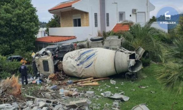 Μπετονιέρα γεμάτη τσιμέντο «εισέβαλε» σε αυλή σπιτιού στη Ρόδο